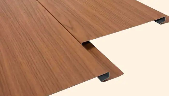 強度に優れ、歪みのないアルミ押出スパンドレル材に塗装とフィルムの2タイプの木目柄をご用意しました。エントランスの天井・建物の軒先だけでなく、外壁にもご使用いただけます。